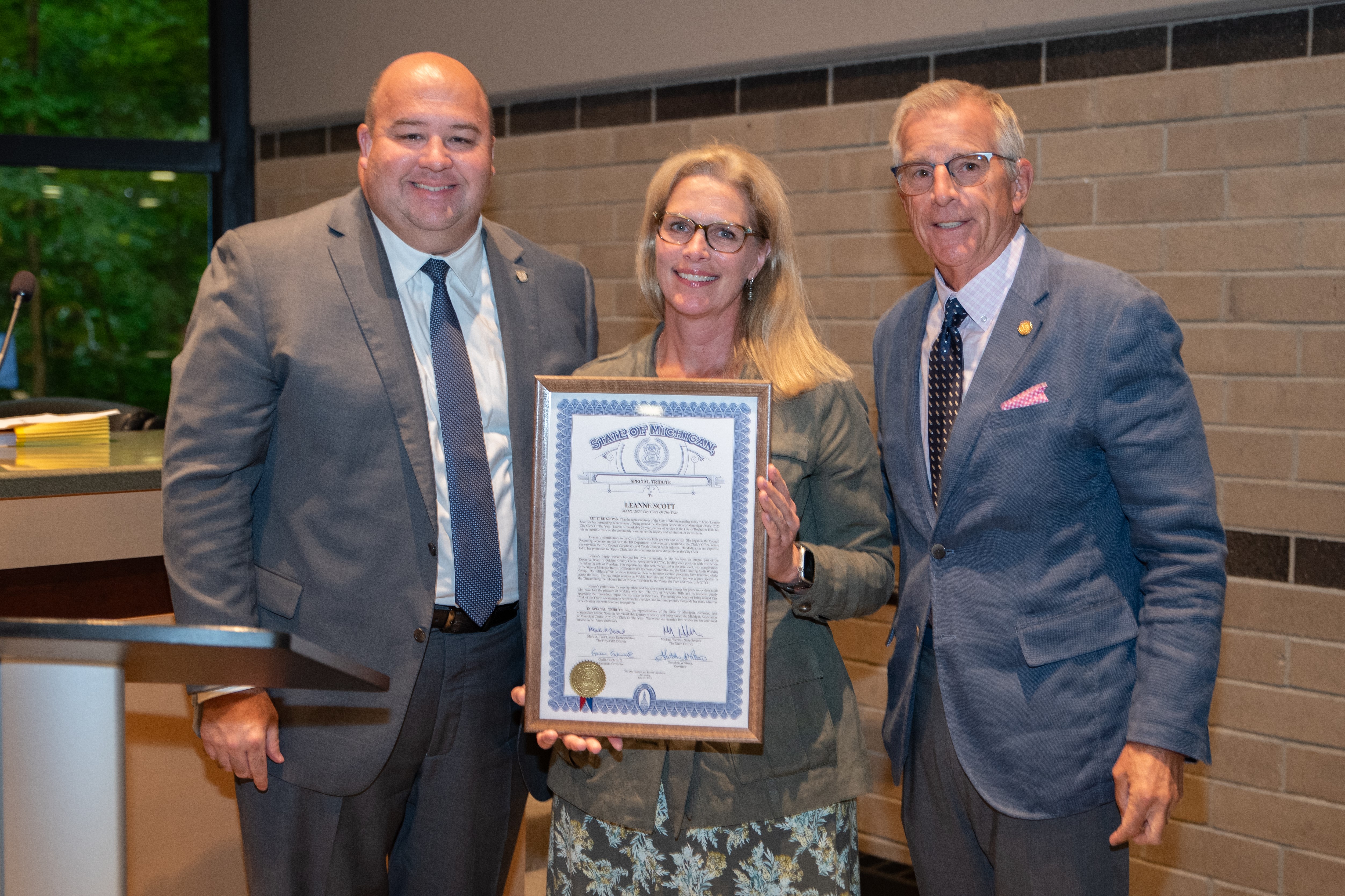 LANSING, Mich. — Sen. Michael Webber (left), R-Rochester Hills, and Rep. Mark Tisdel (right), R-Rochester Hills, presented a state tribute to Rochester Hills City Clerk Leanne L. Scott (center), who was recently named 2023 City Clerk of the Year by the Michigan Association of Municipal Clerks (MAMC).
